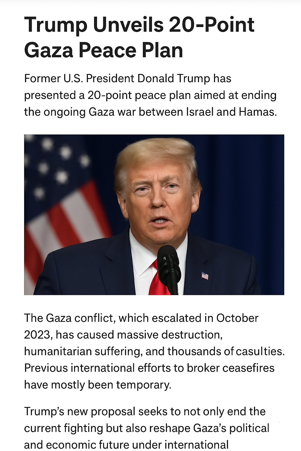 Former U.S. President Donald Trump has presented a 20-point peace plan aimed at ending the…