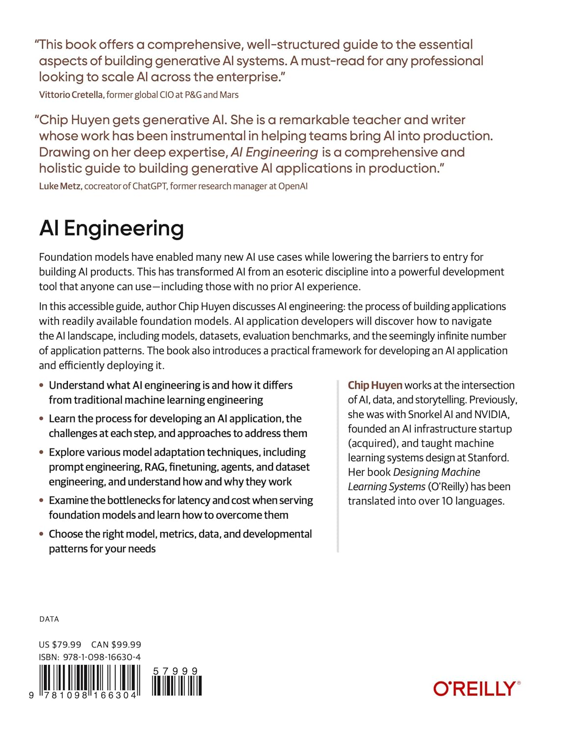 AI Engineering builds upon and is complementary to Designing Machine Learning Systems (O’Reilly).