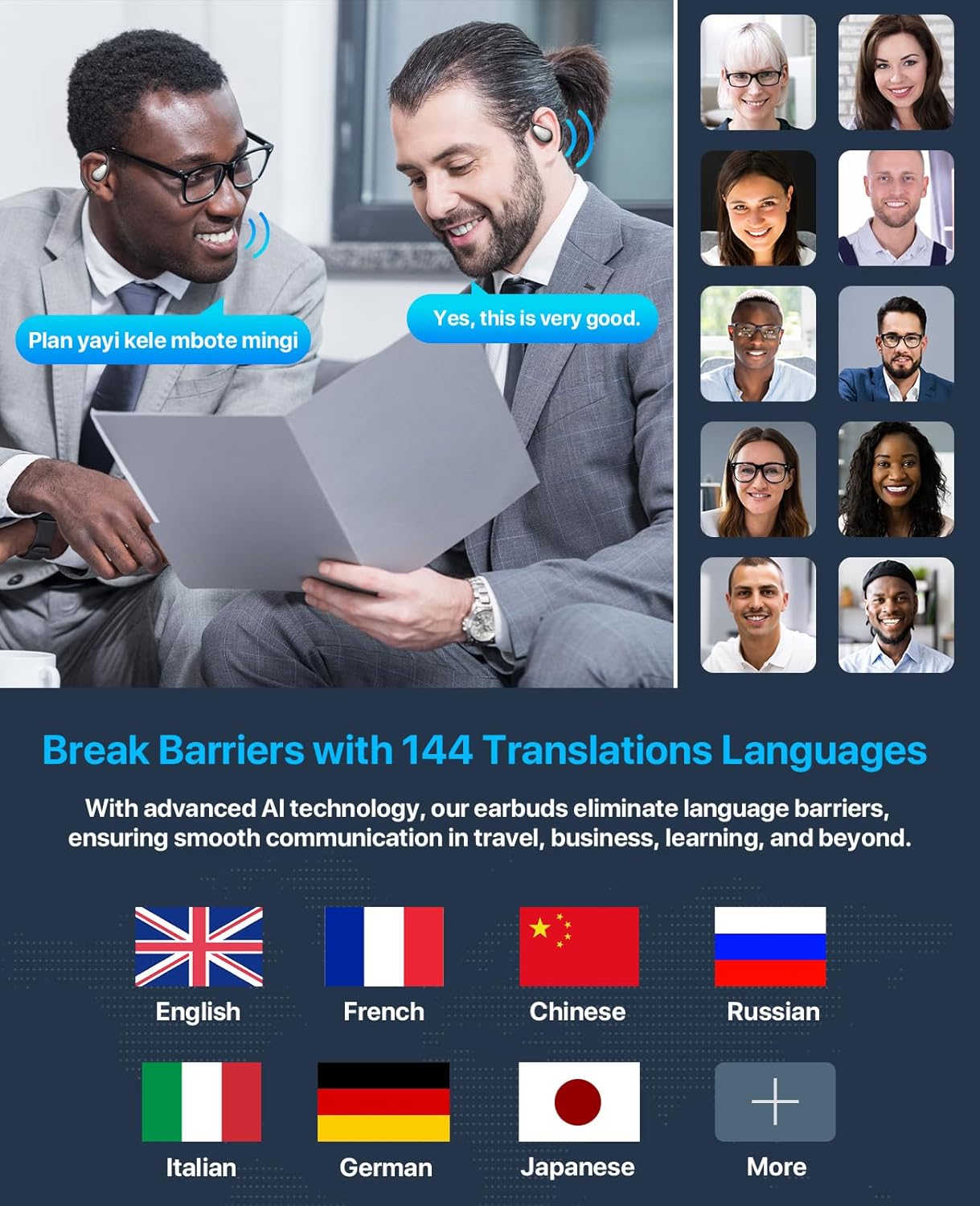 【144-Language with Real-Time AI Translation】 Real-time two-way translation with 98% accuracy across 144 languages (CN/EN/JP/ES/FR/RU etc.). Our ZYDIIE translation earbuds can seamlessly switch language pairs for global business meetings, travel, and cross-cultural communication.
