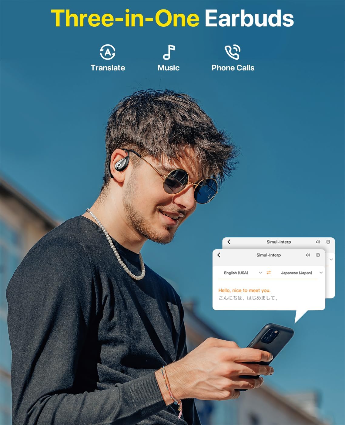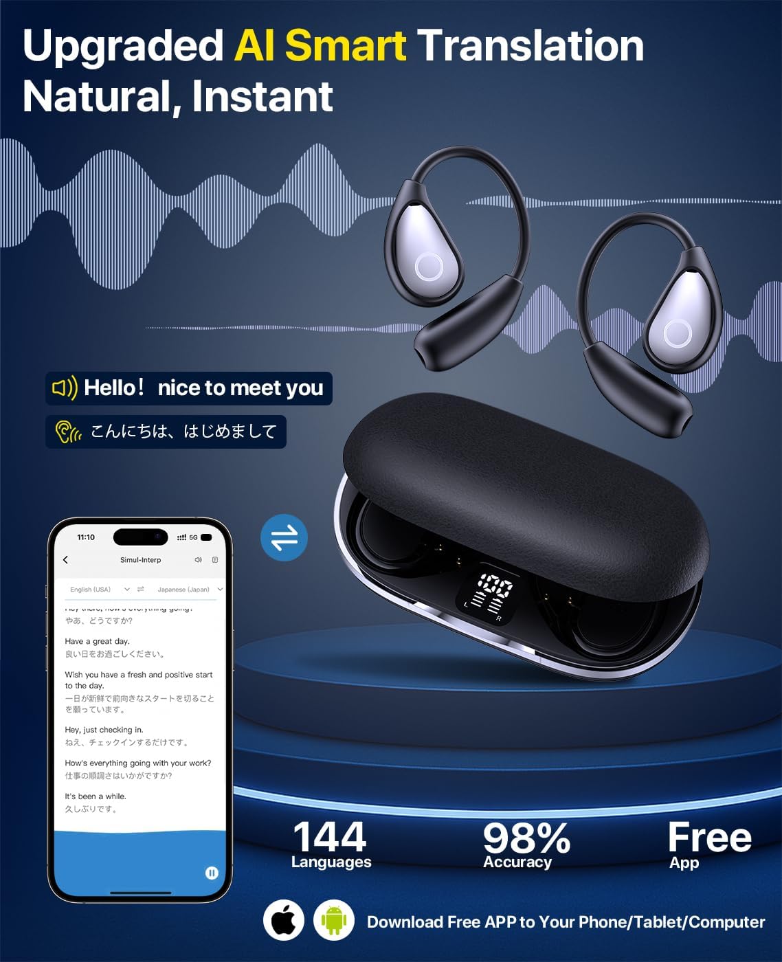 【Ergonomic Design for All-Day Comfort】Fashion,lightweight, ergonomic design ensures a secure and comfortable fit even during extended use, providing a pressure-free wearing experience. Engineered for durability and convenience, open ear translating earbuds are perfect for long business meetings, travel, or personal use.