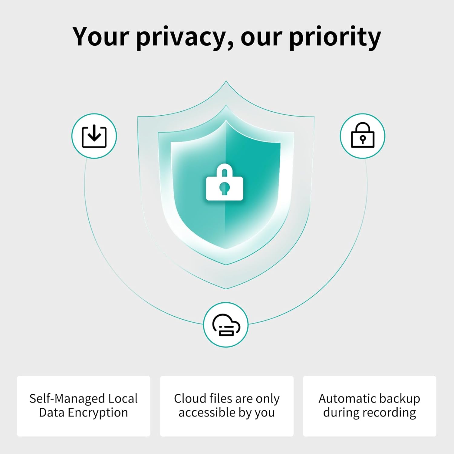 Your Privacy First:Local data encryption, recording files are automatically backed up to your exclusive cloud storage during recording, access to your files is only available after your email login authorization is granted, share recordings, transcriptions and summaries by copying text, exporting documents and emails. Enhance teamwork with transcription and summarization features.