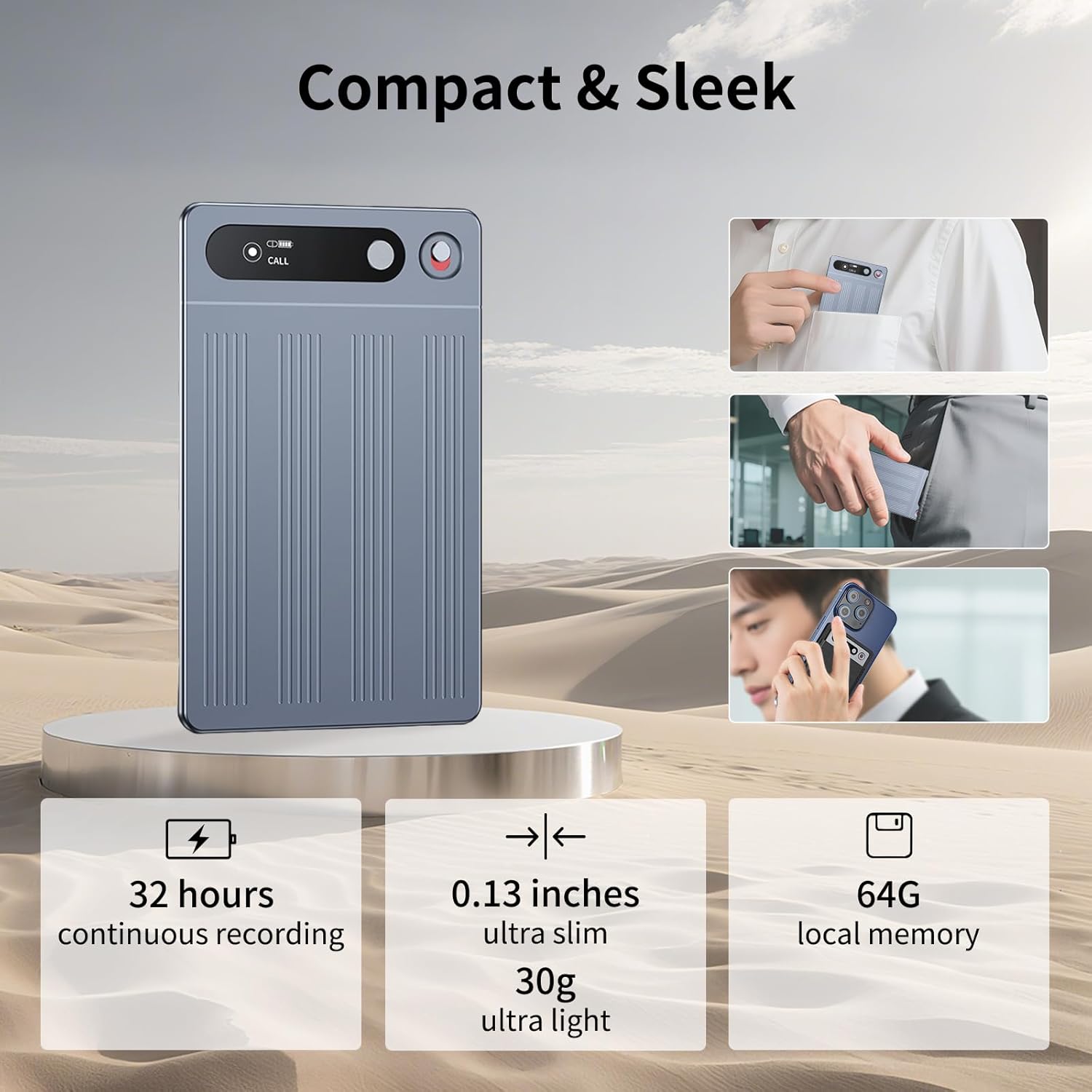 Lightweight and Powerful: All-metal construction with a small 0.5” HD display, weighing only 1.09 ounces, sleek and beautiful, simple and intuitive operation, one-button recording, no complicated operation, compatible with IOS and Android systems, 64GB capacity can store up to 480 hours of recordings. In addition, with a large 500 mAh battery capacity, you can record up to 32 hours of continuous recording on a single charge and up to 80 hours of standby time.