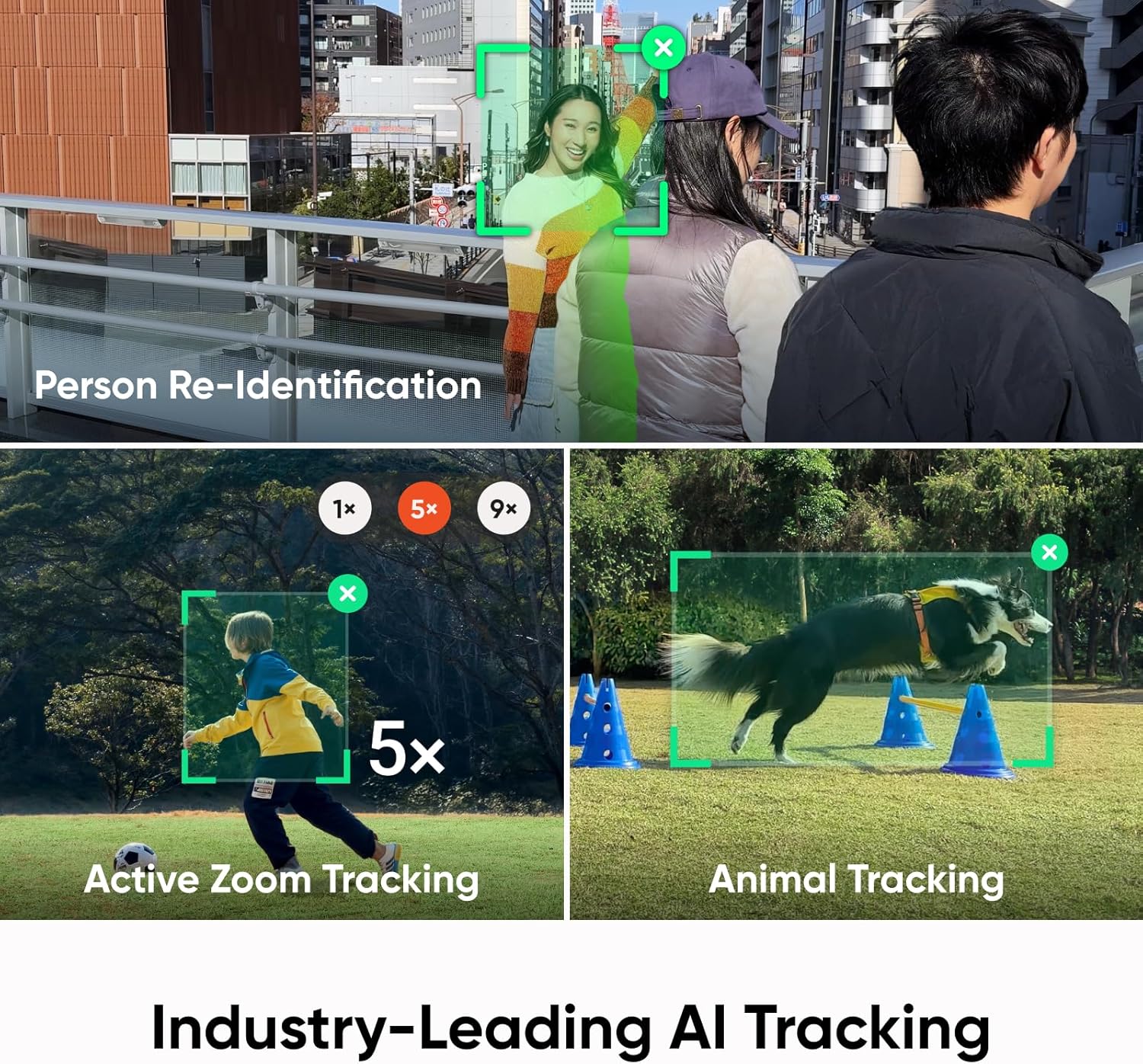 AI Tracker: Compatible with all platforms and devices, the AI Tracker delivers precise tracking even in challenging environments. The built-in spotlight guarantees cinematic-quality footage in low-light conditions.