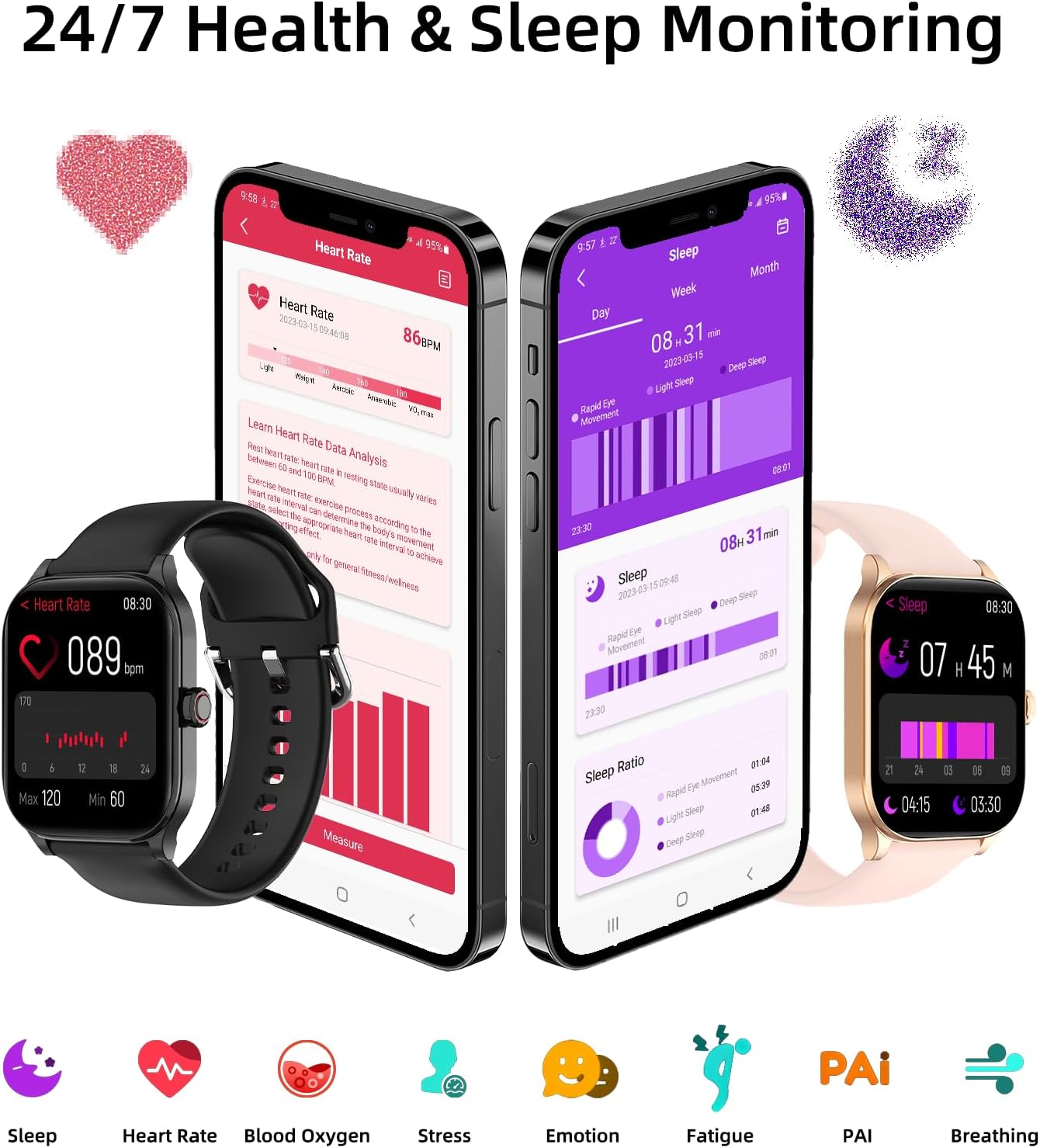 HD Screen & AI Customized Dial – 1.96-inch HD smart watch for women and men, support AI voice to describe the watch faces, support using photos to customize the watch faces, while APP away also provides more than 100 different styles of watch faces for download and change, define your own style.